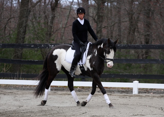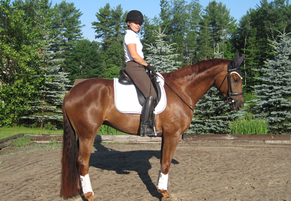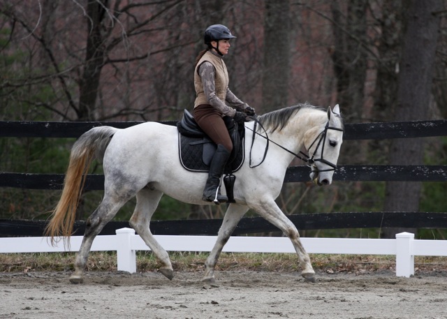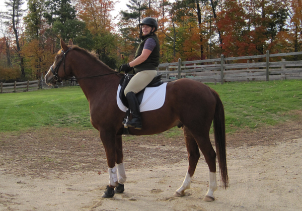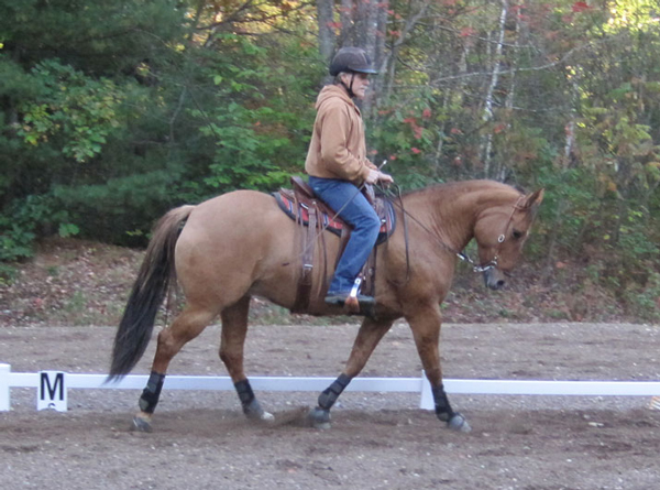 Leslie riding Karlton, a Quarter Horse gelding, at Salt Box Farm in Auburn, NH